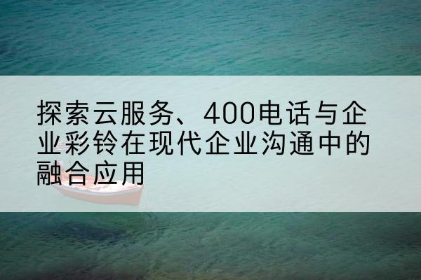 综上所述,云服务、400电话与企业彩铃在现代企业沟通中发挥着重要作用。它们相辅相成,共同构建了企业高效、专业且具有吸引力的沟通体系,助力企业在激烈的市场竞争中脱颖而出,实现业务的持续增长与品牌影响力的扩大。企业应充分利用这些工具,将它们融入日常运营中,以提升整体沟通效率和客户体验,从而在不断变化的市场环境中保持竞争力。